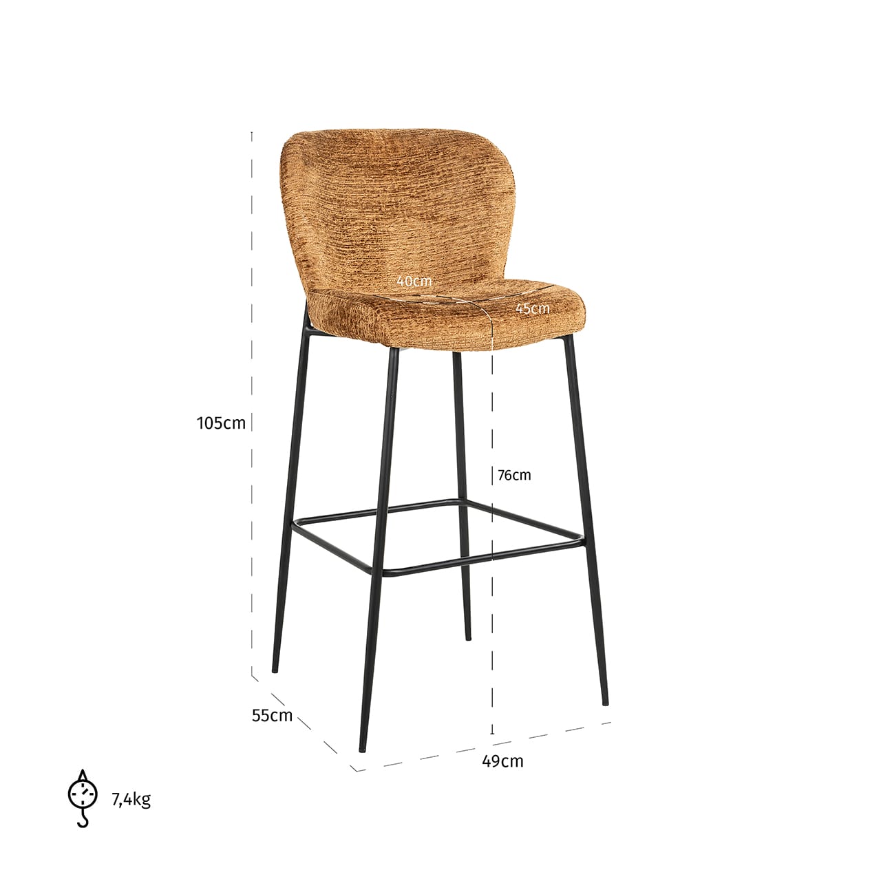 barstoel Darby is een eigentijdse en veelzijdige keuze voor elke baromgeving. Verkrijgbaar in drie stofferingsopties - Cognac Fusion, Cream Fusion en Pale Fusion - biedt hij een breed scala aan esthetische mogelijkheden. Het design is zowel stijlvol als functioneel, met een comfortabele zitting en robuuste constructie. Deze stoel is perfect voor zowel thuisgebruik als in commerciële ruimtes, en combineert moeiteloos stijl met duurzaamheid. De barstoel Darby is een solide en stijlvolle keuze, ongeacht de gekozen stof.