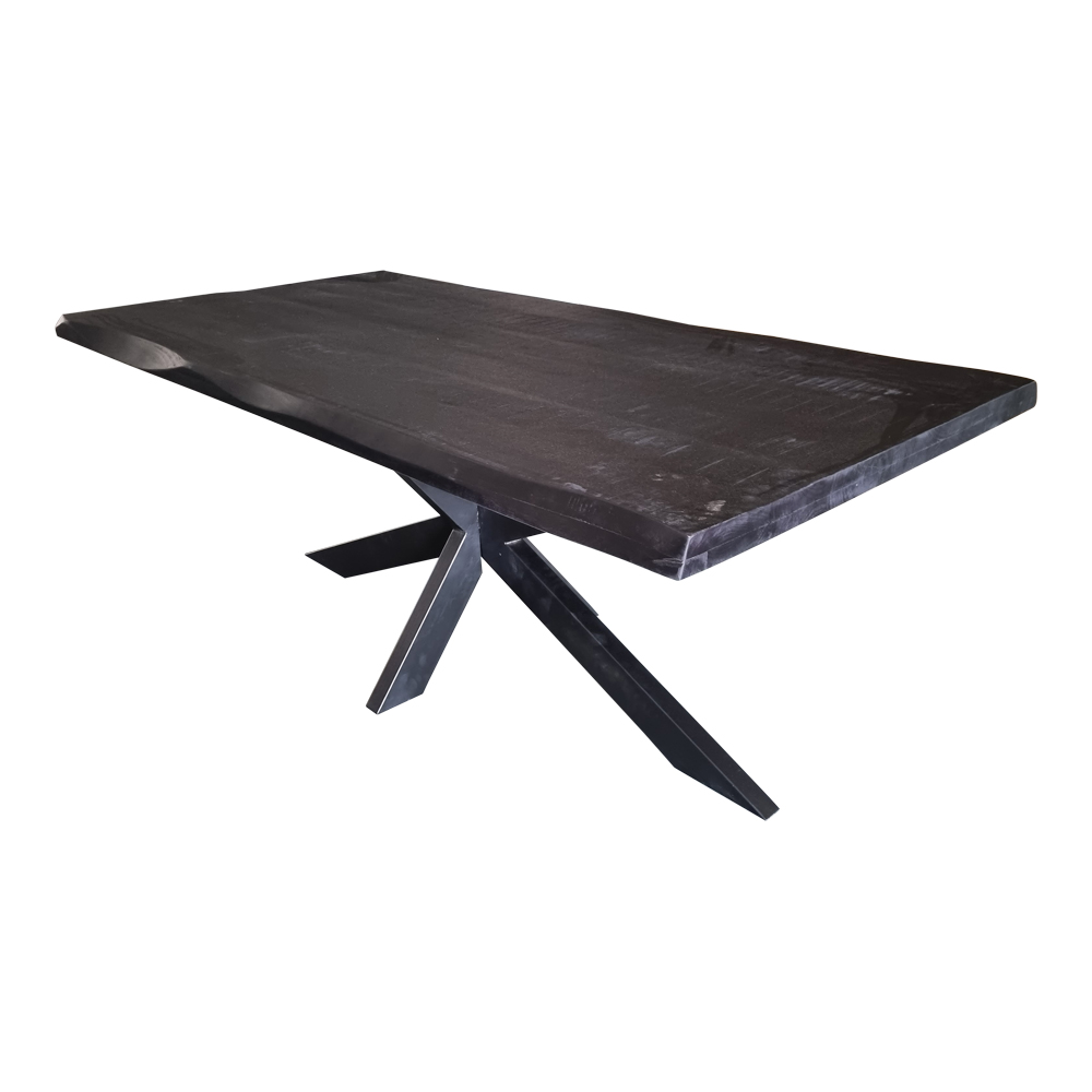 Boomstamtafel Boston Black is gemaakt van mangohout en metaal. Het tafelblad bestaat uit verschillende stroken mangohout, waardoor geen enkele tafel hetzelfde is. Het blad is voorzien van een matte zwarte lak. Afmeting Breedte: 160 cm Diepte: 90 cm Hoogte: 76 cm Dikte blad: 6 cm opgedikt Afmeting matrixpoot Breedte: 10 cm Diepte: 5 cm