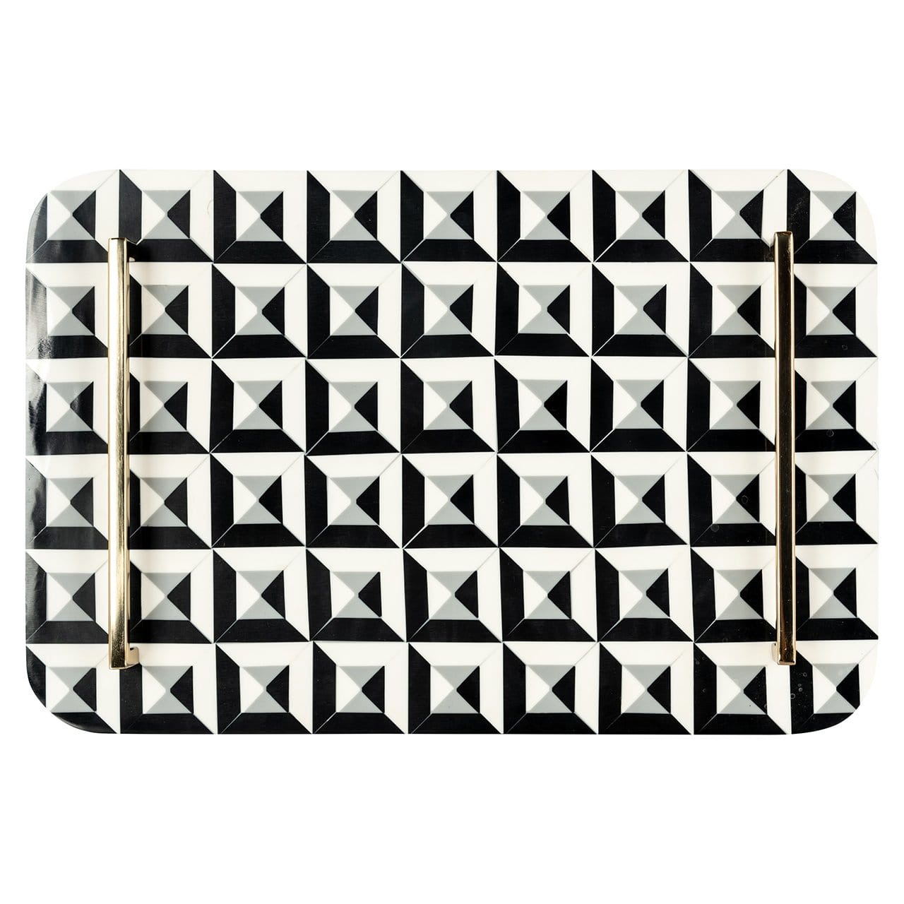 Het Dienblad Birte is niet zomaar een dienblad, maar een kunstwerk op zich. Met zijn unieke zwart/witte 3D effect design is het een opvallend stuk dat zeker de aandacht zal trekken. Of je het nu gebruikt om drankjes te serveren, als decoratief element in je woonkamer, of als stijlvolle onderzetter, het Dienblad Birte voegt een vleugje moderniteit en elegantie toe aan elke ruimte