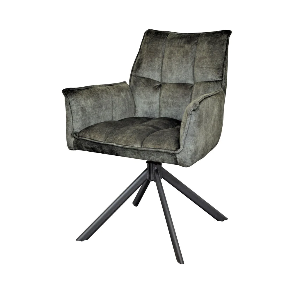 Eetkamerstoel Dani Velvet Green is bekleed met velvet-stof. De stoel is 180 graden draaibaar en heeft een return memory functie. De stoel is voorzien van een metalen zwarte poot. Let op: de stoelen worden per twee stuks verkocht! Afmetingen: Breedte: 56 cm Diepte: 65 cm Hoogte: 85 cm Zithoogte: 50 cm Zitdiepte: 45 cm Armleuninghoogte: 66 cm Onderhoud: afnemen met een lichtvochtige doek