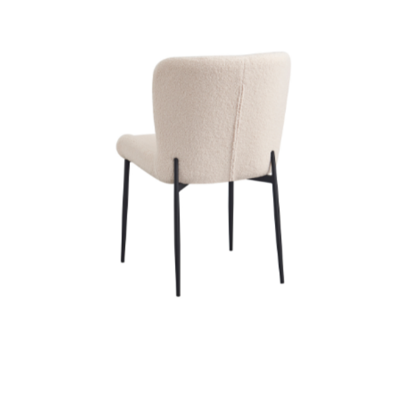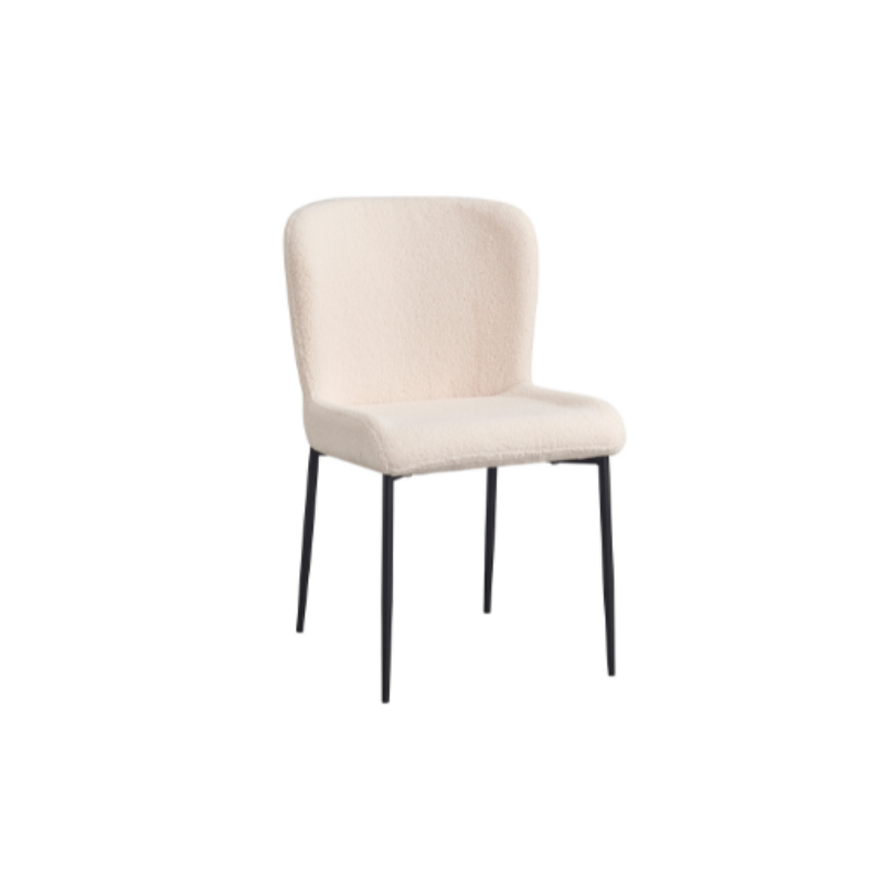 Eetkamerstoel Tess Off White is bekleed met de Teddy-stof. De stoel is voorzien van een metalen zwarte poot. Let op: de stoelen worden per twee verkocht! Afmetingen: Breedte: 50 cm Diepte: 59 cm Hoogte: 82 cm Onderhoud: afnemen met een lichtvochtige doek