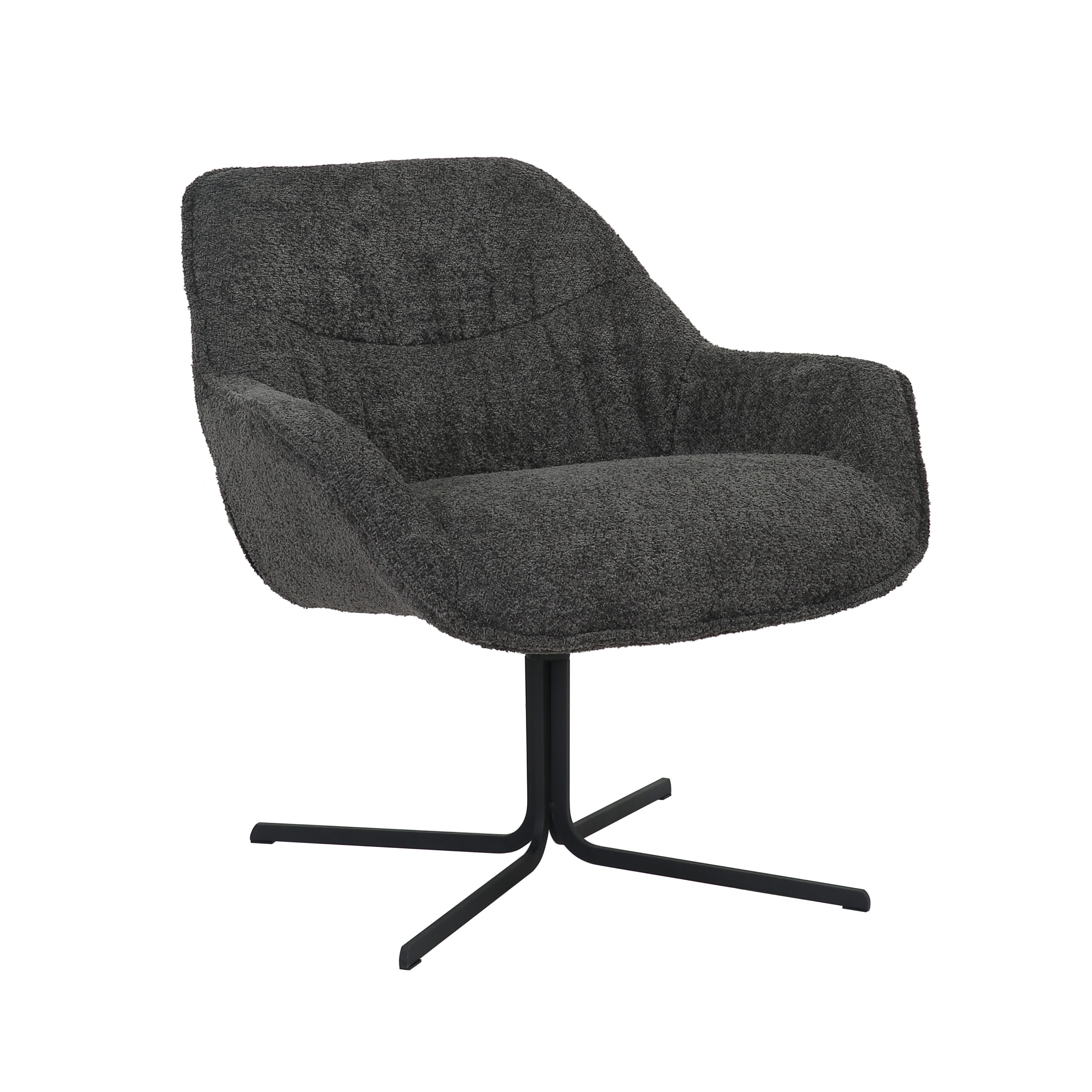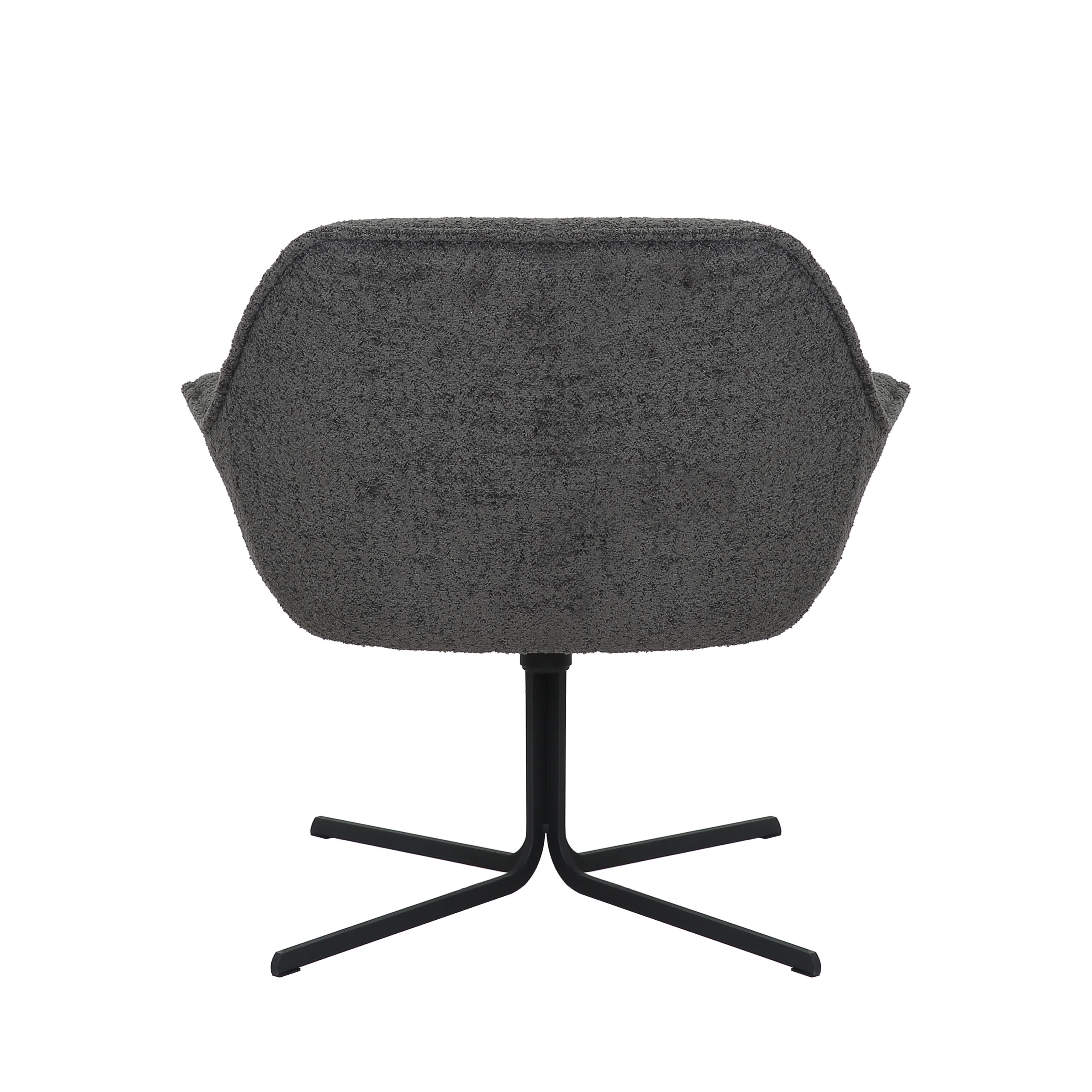 Fauteuil Mila is bekleed met een polyester stof. De fauteuil is voorzien van een metalen poot en is draaibaar.