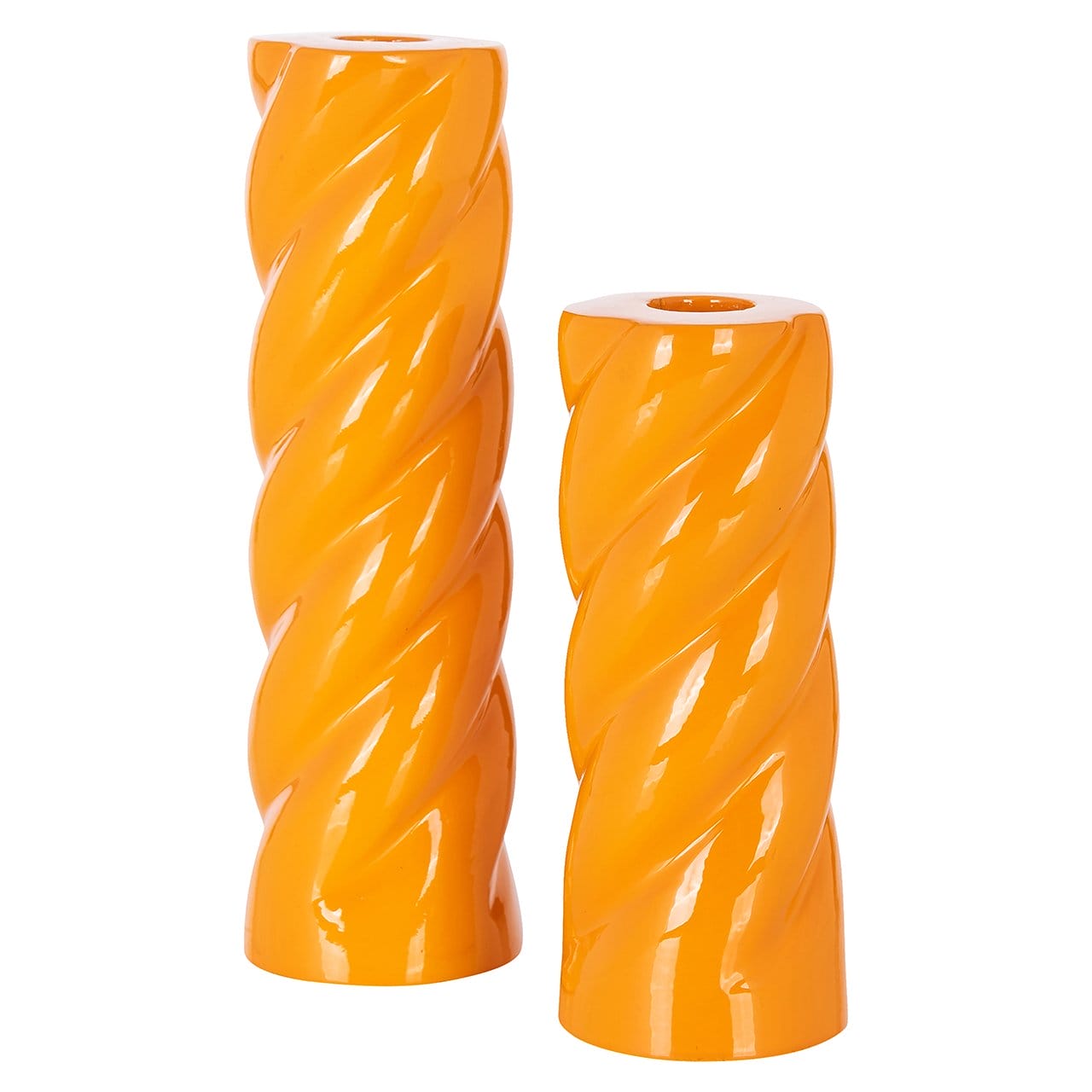 Een stijlvolle toevoeging aan elk interieur met zijn opvallende oranje tint en unieke vorm. Deze kandelaar, verkrijgbaar in zowel een klein als groot formaat, is niet alleen functioneel maar ook een kunstwerk op zichzelf. De heldere oranje kleur geeft een warme gloed aan je ruimte, terwijl de onderscheidende vorm ervoor zorgt dat hij opvalt, zelfs wanneer hij niet in gebruik is.