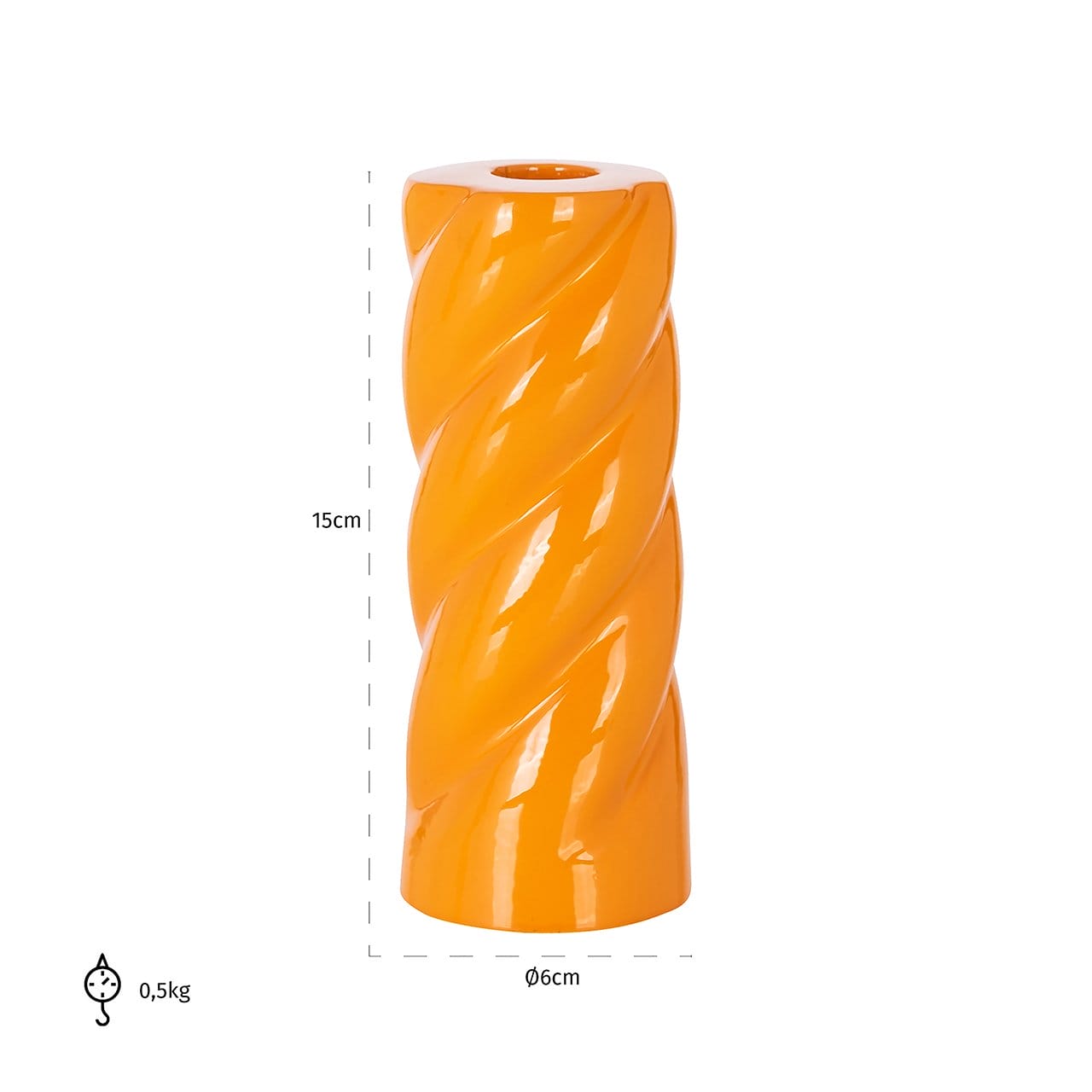 Een stijlvolle toevoeging aan elk interieur met zijn opvallende oranje tint en unieke vorm. Deze kandelaar, verkrijgbaar in zowel een klein als groot formaat, is niet alleen functioneel maar ook een kunstwerk op zichzelf. De heldere oranje kleur geeft een warme gloed aan je ruimte, terwijl de onderscheidende vorm ervoor zorgt dat hij opvalt, zelfs wanneer hij niet in gebruik is.