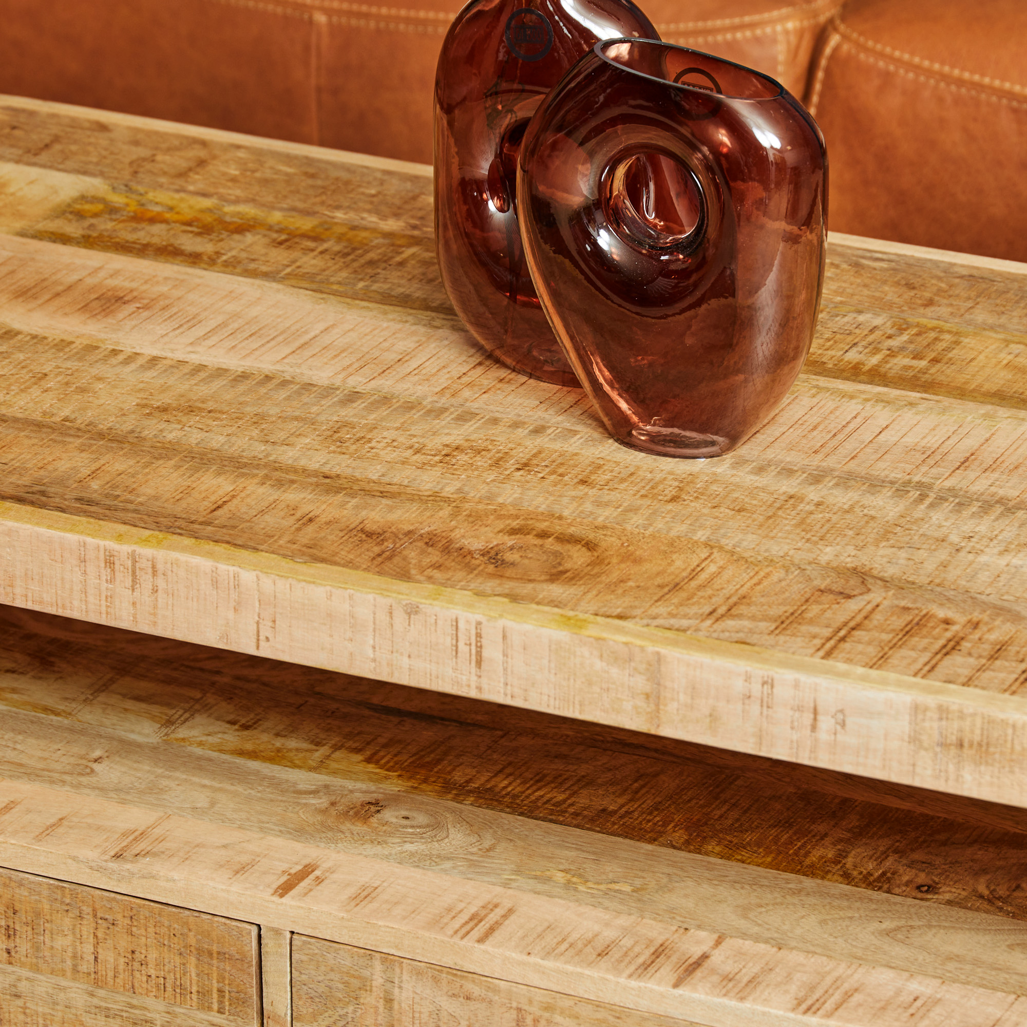 Salontafel Boaz is gemaakt van mangohout en metaal. Het mangohout is behandeld met een blanke lak. De metalen poten zijn afgewerkt met een zwarte lak.