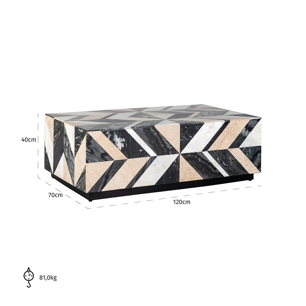Een echte blikvanger, dat is de Rostelli salontafel. Door het unieke uiterlijk met het ruitjespatroon van ingelegd marmer, mango hout en MDF wordt dit tafeltje het gespreksonderwerp van jouw interieur. Combineer het met andere stukken uit de Rostelli collectie, maar ook in zijn eentje blijft de Rostelli een aandachtstrekker.