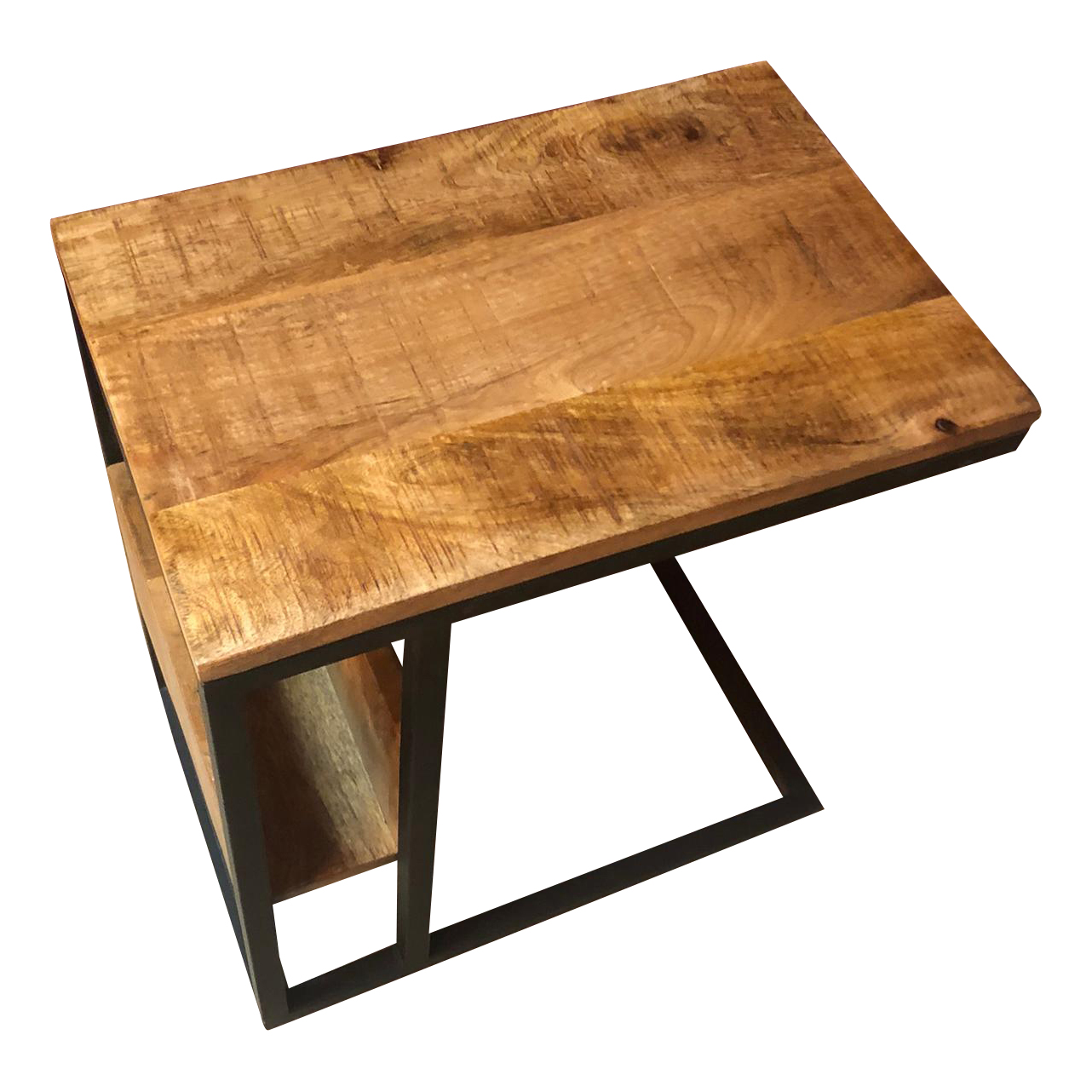 Deze laptoptafel is uitgevoerd in massief mangohout. Het frame is gemaakt van metaal dat is afgewerkt met een zwarte lak. De laptoptafel is voorzien van een blad en een postvak.